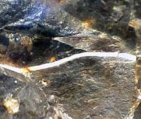 Close up of the fragment, approx. 10x, showing a mineral vein, probably quartz.
